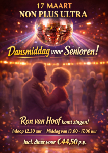 - 17 Maart: Senioren kijk, luister en dansmiddag – 44,50 p.p.